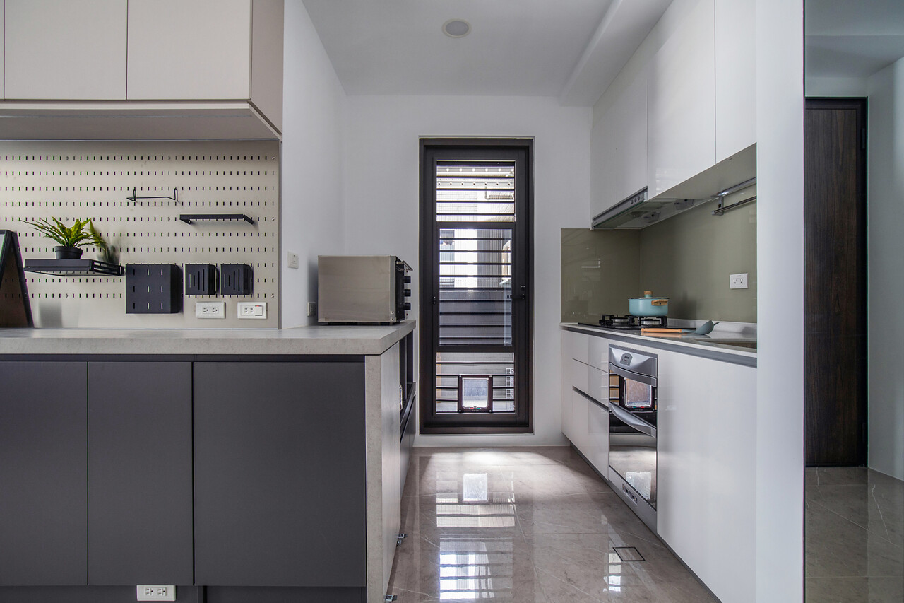 拋去上班後的緊張壓力,休假時更是利用做烘培來紓壓,因此在空間的需求上除卻我們常規的餐桌外,更需要為烘焙預備大量的收納空間及親朋好友來時可以聚餐的位置。