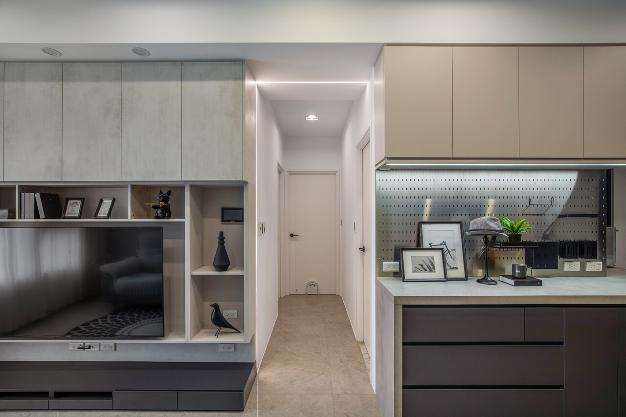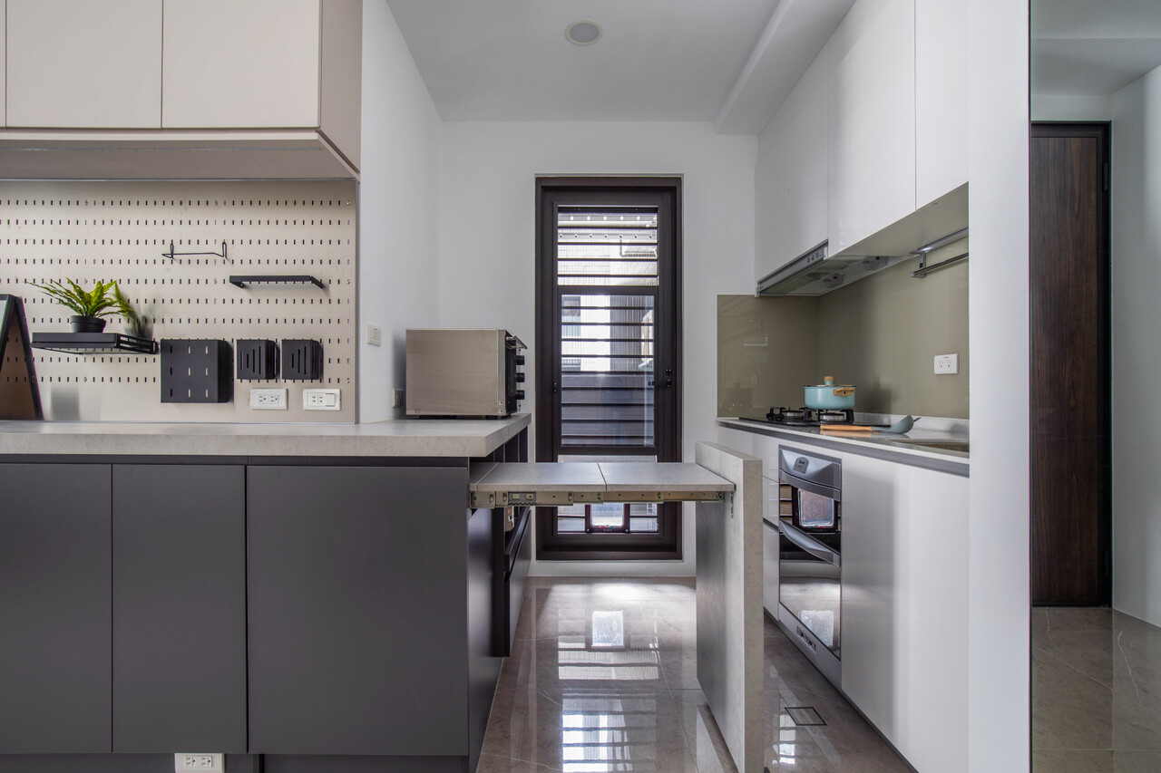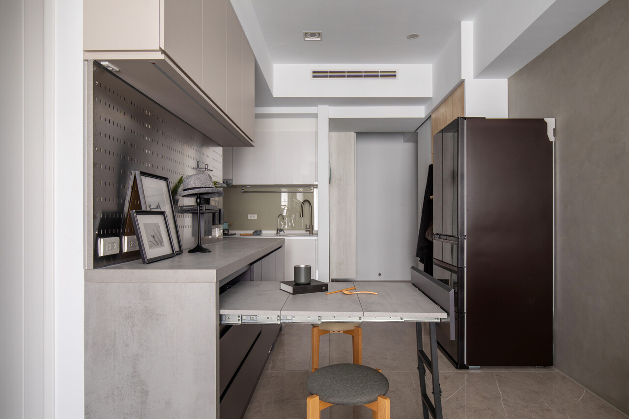 在空使用上利用了很多的隱藏性的五金,不僅保有了空間的寬敞性,也為未來的聚會多添加了許多的變動性。