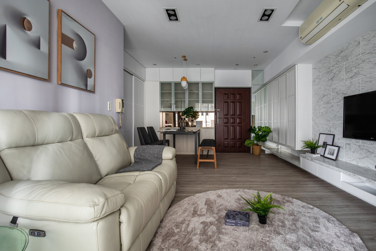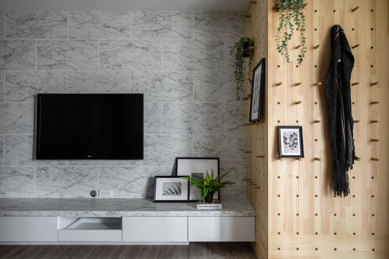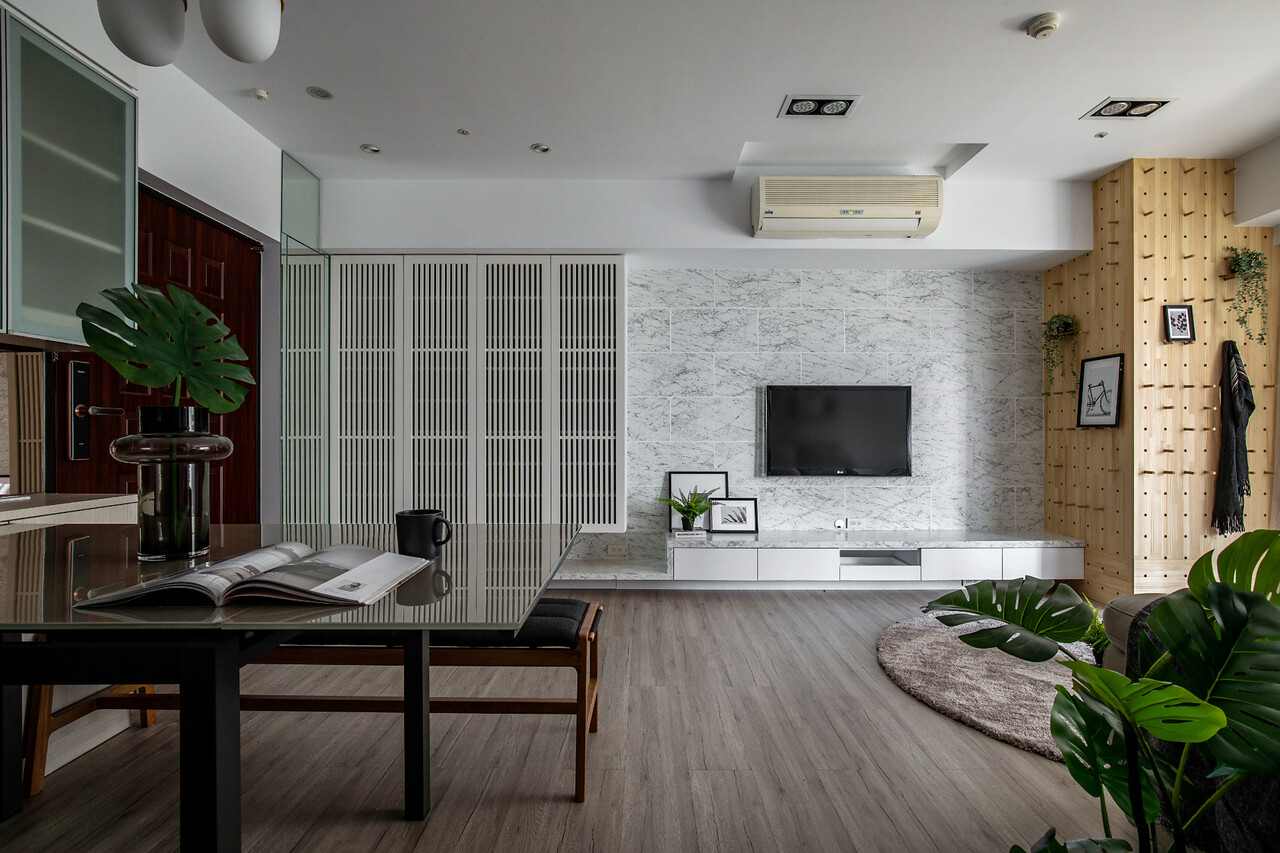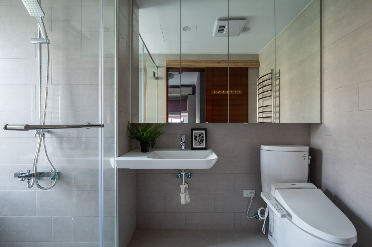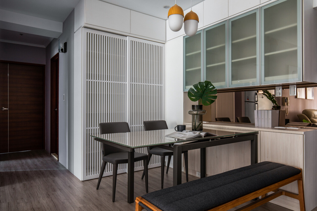 作為退休宅的本案,由沐恩空間設計負責重劃公領域及衛浴空間,撫平原有建材困境,並強化收納機