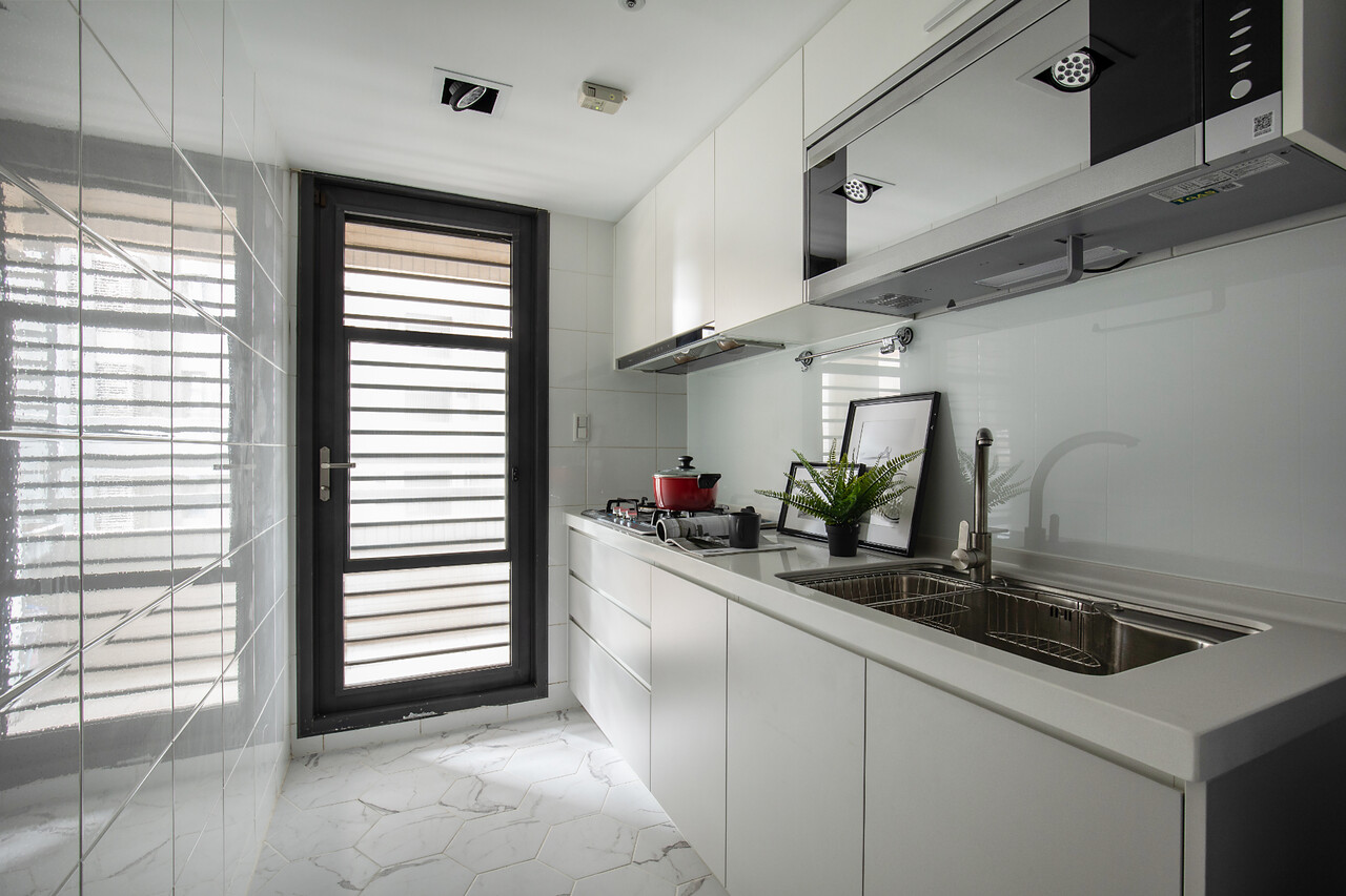 主要建材:美耐板、系統櫃、實木板、磁磚、玻璃